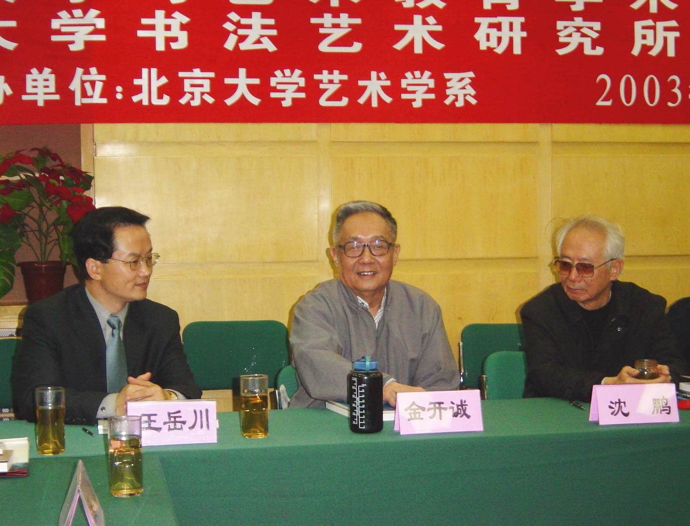 沈鹏、金开诚、王岳川在2003年北大书法所成立大会上