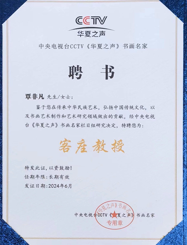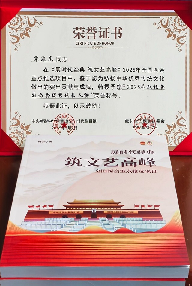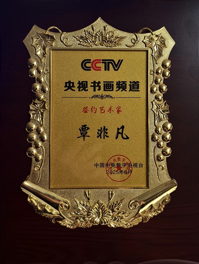 其创作的多幅作品展现出独特的艺术风格与深厚的功底,被《当代名家大典》等大型专著收录。不仅如此,覃非凡积极参与国际和国内各类书法比赛,屡获佳绩。他荣获世界华人艺术家成就奖,数次在中国诗书画家网书法赛事中斩获一等奖;在2024年亚细亚(韩国)美术展中荣获三等奖;2025“墨缘堂”全国艺术大赛荣获书法特等奖;在中国《书法报》举办的赛事中获得三等奖;多次获得广西书法教育学会一等奖以及广西硬笔书法家协会优秀奖等不同级别的奖项。2024年9月,他创作的书法作品《乘风破浪》更是被国家游泳中心(水立方)烧制成艺术砖,装饰在中心大厅,彰显出极高的艺术价值。此外,还有多幅书法作品得到国家和澳门邮政部门的认可,准予出版发行具有“国家名片”美誉的邮票、邮品和大型文献邮册;2025年还被中央新影时代栏目评为“献礼全国两会优秀代表人物”,被授予首批非遗传承创新人才荣誉称号。其作品影响力由此可见一斑。