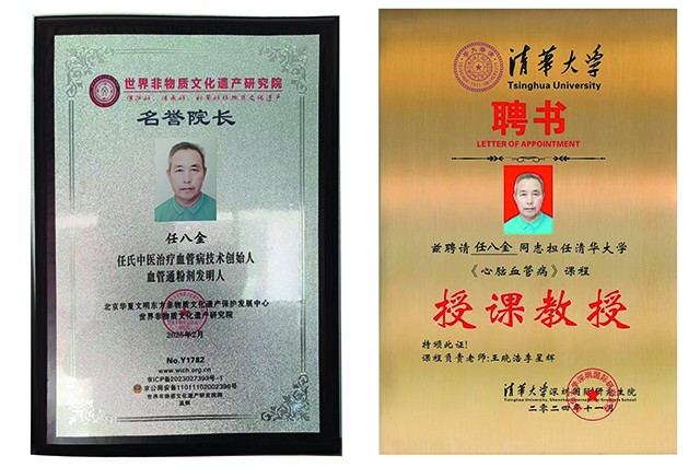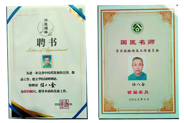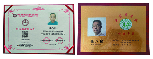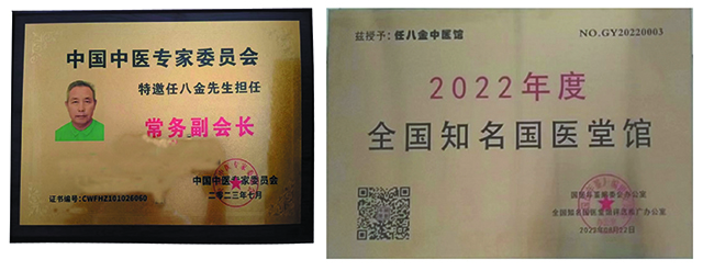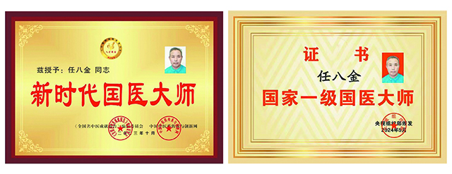 2023年《任氏中医治疗血管病》技术和通用方剂《血管通粉剂》分别被入编“健康中国—《中医力量》”第499页及《全国名中医成就报告》第246页,并被编辑委员会和中国中医药传承与创新网授予任八金“新时代国医大师”荣誉称号。