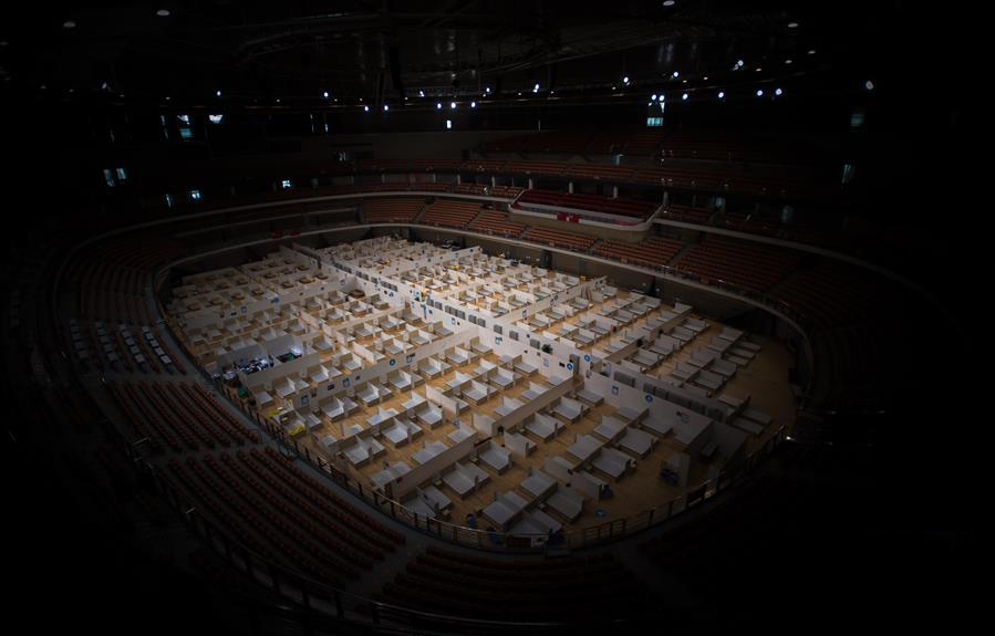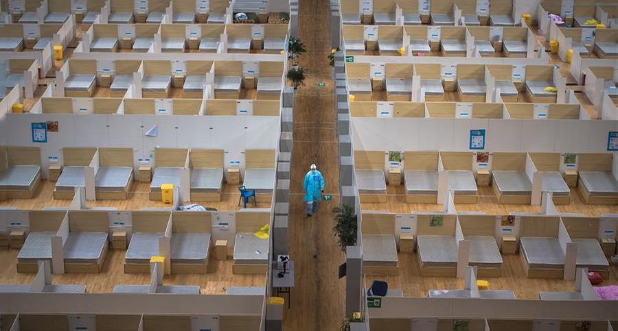 3月8日,武汉体育中心方舱医院送走最后一批痊愈患者,正式休舱。这是休舱的武汉体育中心方舱医院