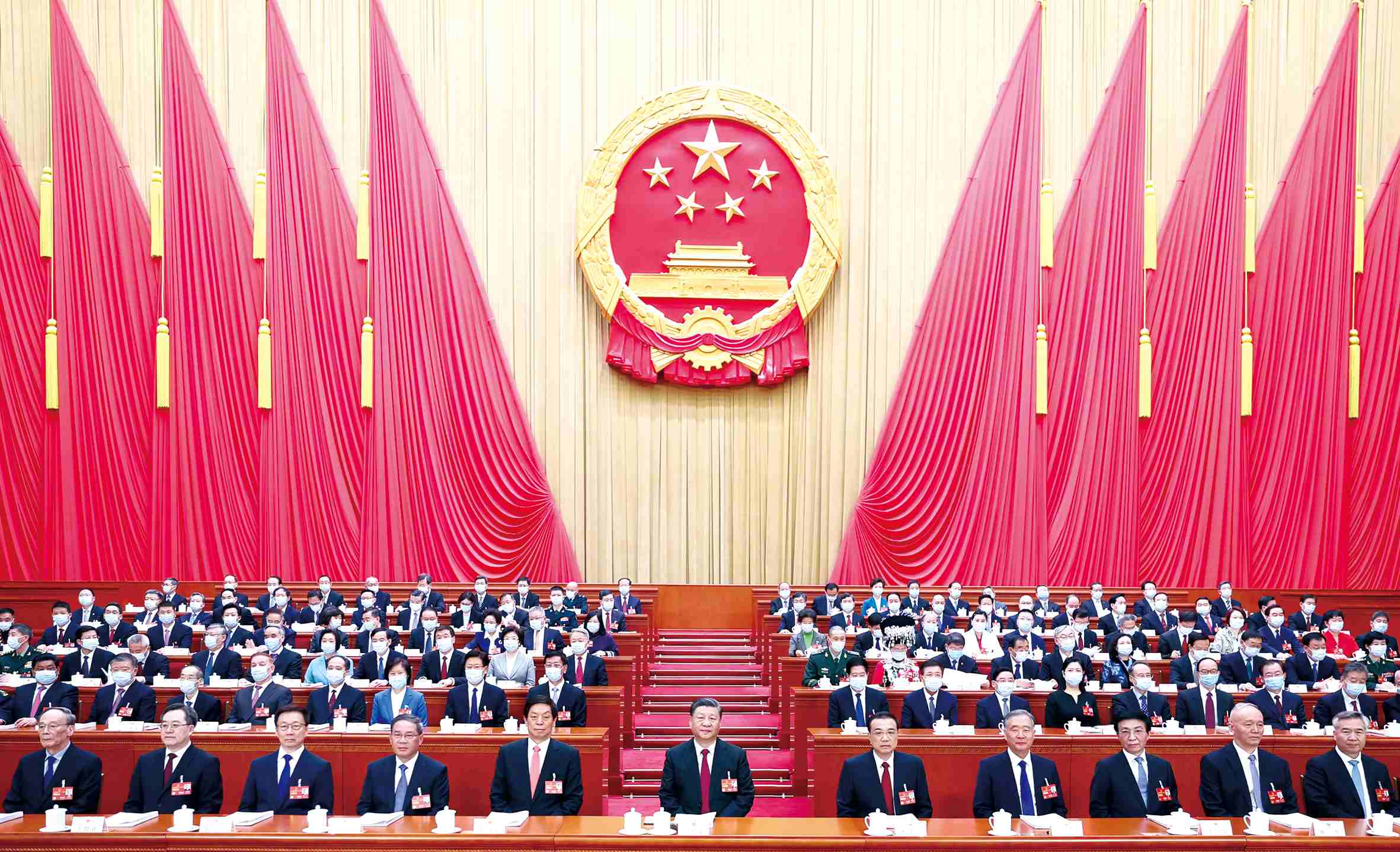 习近平栗战书汪洋李强王沪宁韩正蔡奇丁薛祥李希王岐山等在主席台就座 李克强作政府工作报告 赵乐际主持大会 听取关于立法法修正草案的说明等