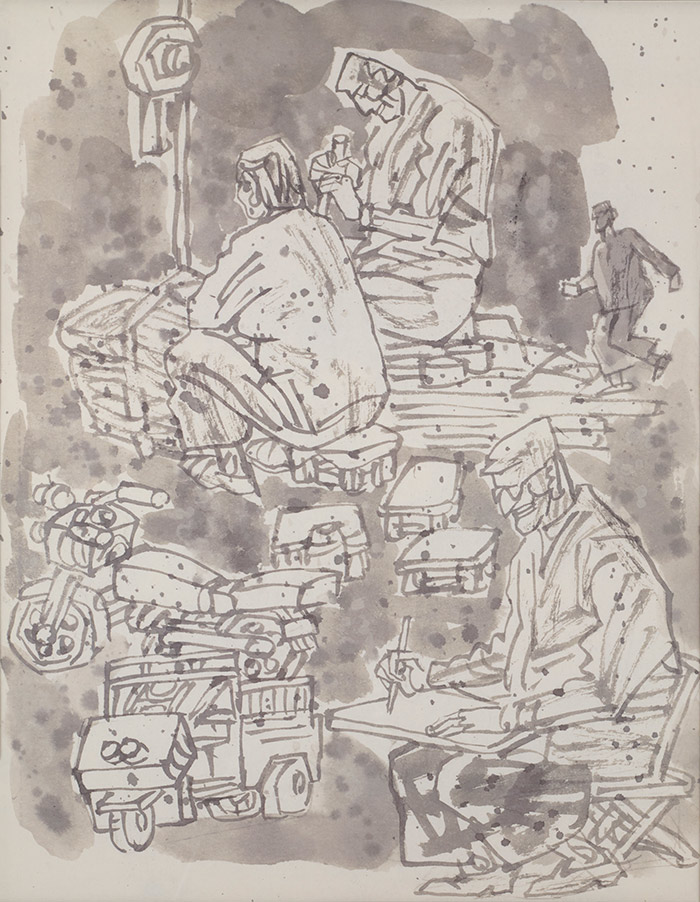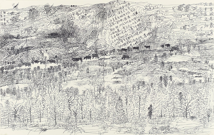 卢禹舜 扶贫脱贫培根铸魂源远流长 纸本炭笔速写 29cm×46.5cm 2019 年