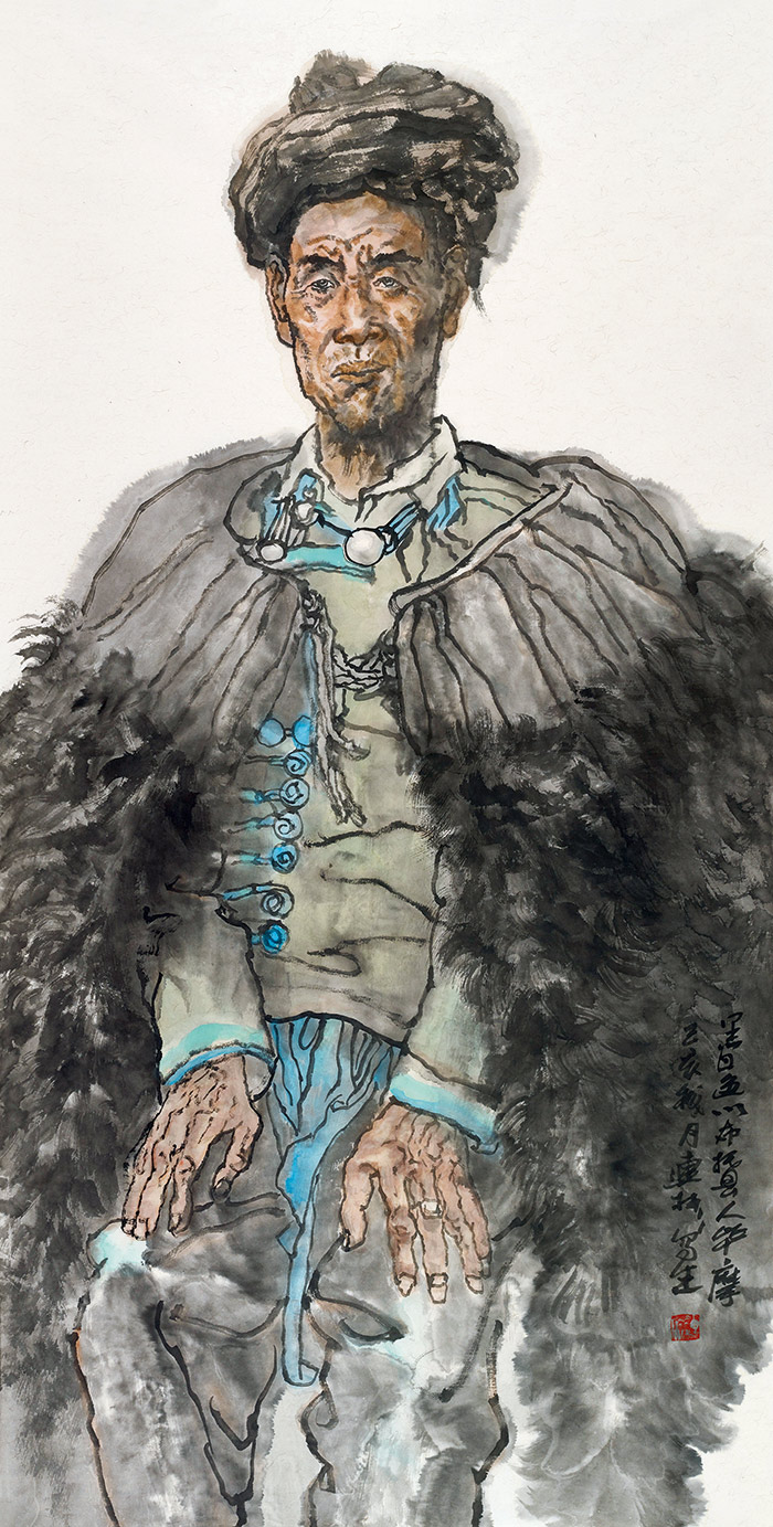 纪连彬 凉山彝族人物写生 纸本设色 136cm×68cm 2019 年