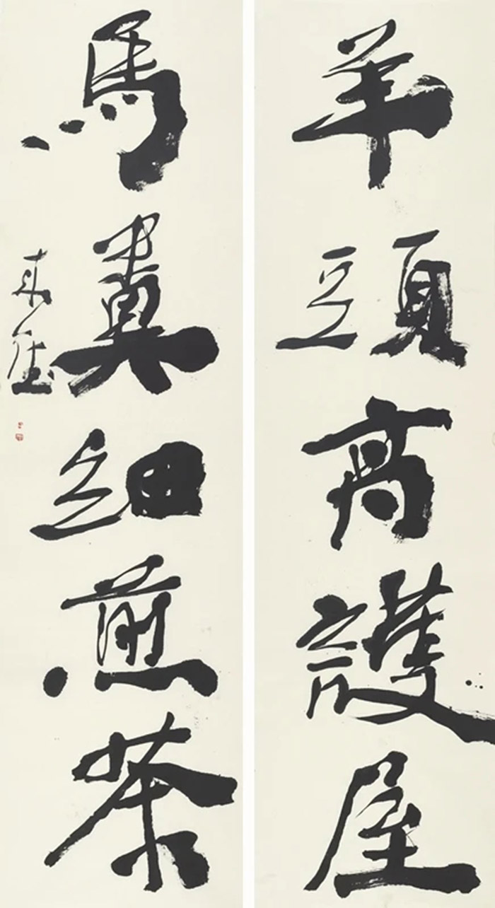曾来德 羊头高护屋,马粪细煎茶 书法 180cm×48cm×2 2019年