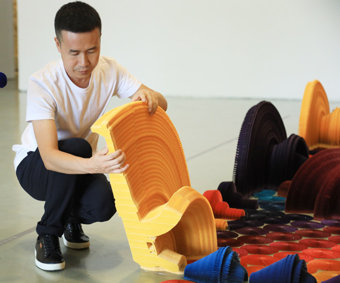 艺术家李洪波现场演示作品,揭秘“花海”玄机