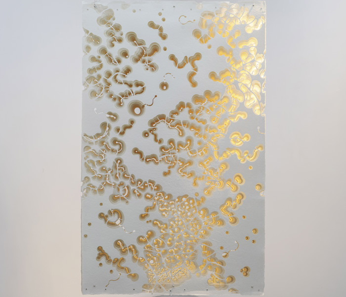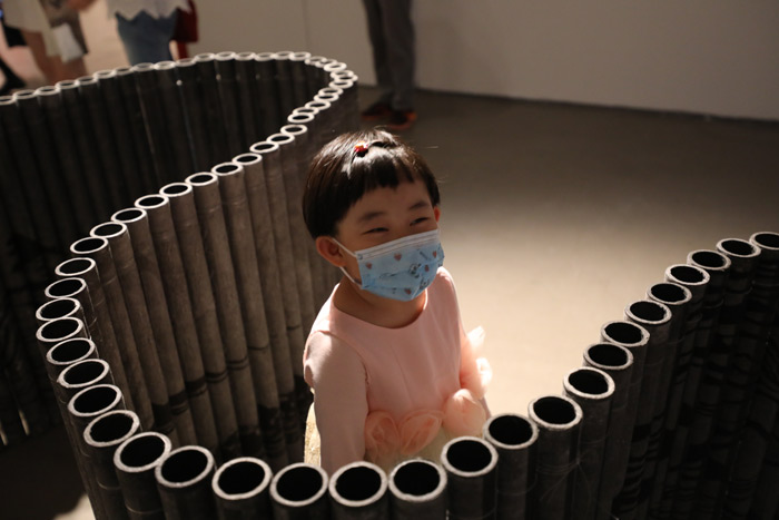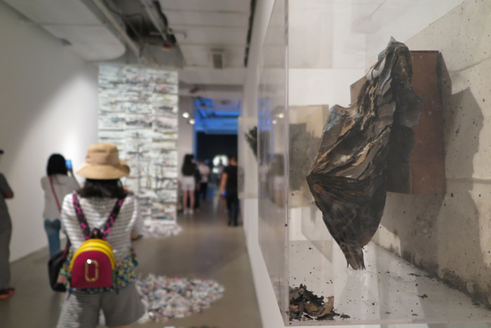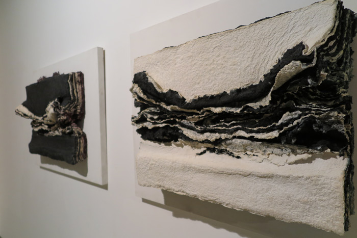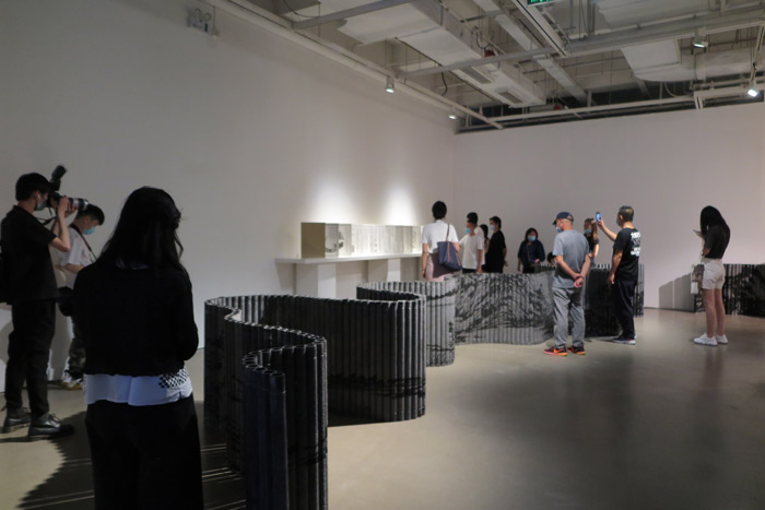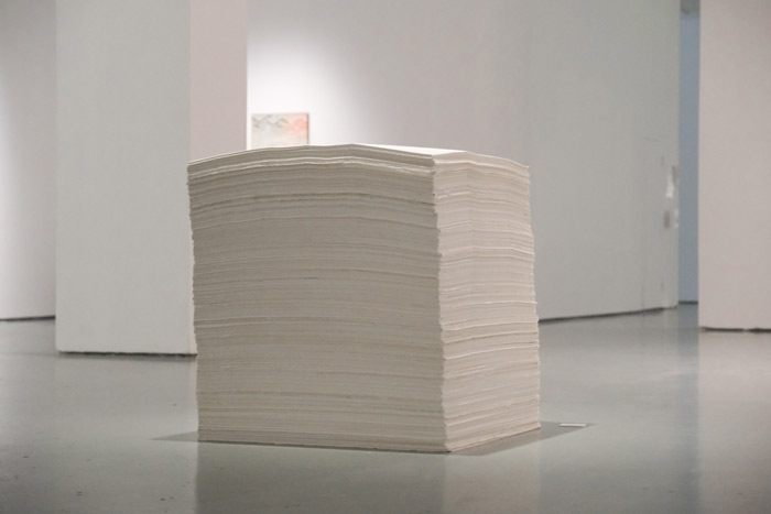 以多层宣纸交叠组合的方式创作了这件装置作品