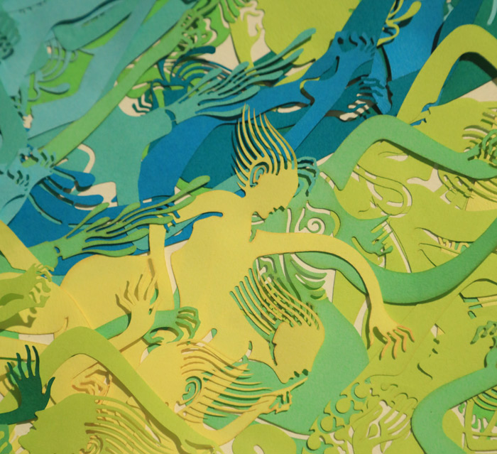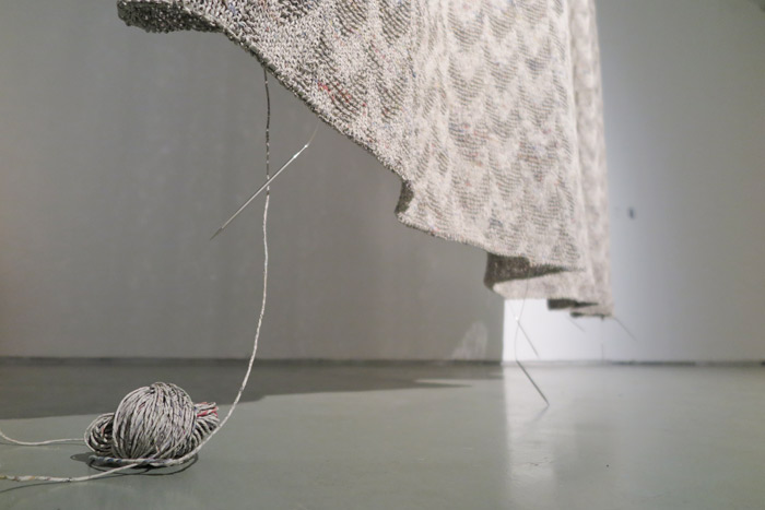 作品细节,以纸代替“毛线”,材料的转换带来语言的创新