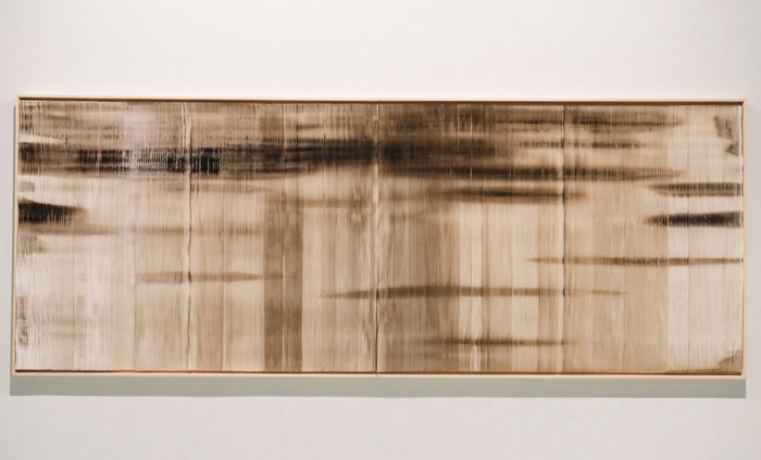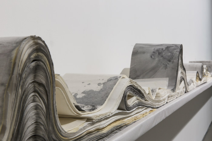 邹操,云山墨戏-局部,宣纸、冰墨,1000x25x40cm,2015