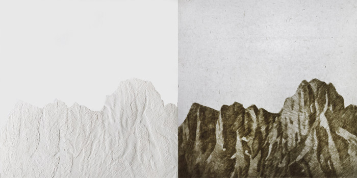 阴阳起伏,巧妙的光影和肌理再造纸上巍峨