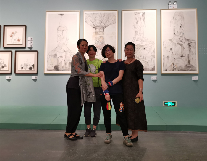 参展的四位艺术家王文婕、毛进、曹清与可可