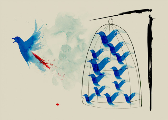 安·基尔南获得莫伊拉·杰米尔年度最佳插画奖和2020年最佳新闻插画奖。基尔南的获奖插画受开放民主机构(Open Democracy)委托,为韦尔埃斯坎达尔(Wael Eskandar)撰写的一篇题为《Twitter如何压制阿拉伯用户并充当道德警察》的文章配图。简单的笔触和一抹红色象征着Twitter的更新,它从铅笔勾勒出的笼子里挣脱出来,结果却被击落。她流畅而有力的笔触给评委们留下了深刻的印象,他们称赞基尔南创造性得使用了该公司的logo。