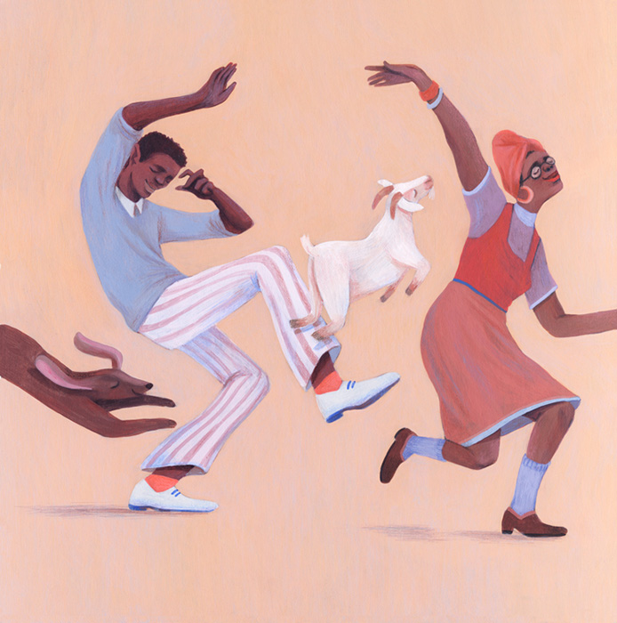 年度最佳学生插画奖亚军:维亚拉·博亚吉耶娃《挥舞》(安格利亚·鲁斯金大学剑桥艺术学院)。博亚吉耶娃这幅充满活力的插画置于一本无言图画书中,书名为Induli,意思是南非科萨语中的山。《挥舞》极具感染性、令人振奋的勃勃生机吸引了评委,他们赞赏博亚吉耶娃对色彩和形式的生动运用。
