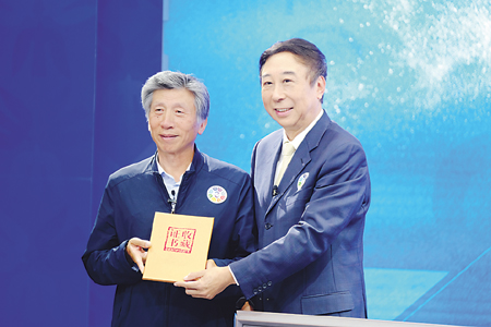中国摄协主席李舸(中)和摄影家刘宇(左)在直播现场