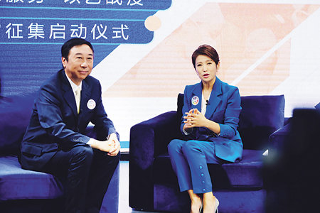 中国文艺志愿者协会主席冯巩(左)、中国文艺志愿者协会理事徐春妮在直播现场