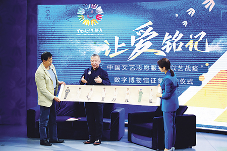 面对新冠肺炎疫情,全国无数文艺志愿者“以艺战疫” ,创作了大量优秀文艺作品,积极开展网络文艺志愿服务。中国文联、中国文艺志愿者协会联合各全国文艺家协会、各级文联组织开展“中国文艺志愿服务‘以艺战疫’数字博物馆”征集活动,通过文艺的视角记录抗击疫情平凡而伟大的过程,运用现代数字技术将这些优秀作品、物品和感人的故事,用文献、实物、图片、视频等方式送上云端,让更多人了解和铭记,旨在加强文艺志愿服务的示范带动作用,弘扬志愿精神,用明德引领风尚,推动文艺界行风建设。
