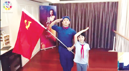 中国文艺志愿者协会副主席、中国舞协副主席黄豆豆用这面党旗应征藏品,并与女儿黄豆芽在直播中表演了舞蹈《闪闪的红星》