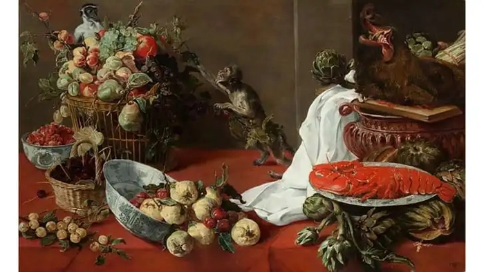 弗兰斯·斯奈德(Frans Snyder)《有猴子的静物画》 来源:布拉格国家美术馆
