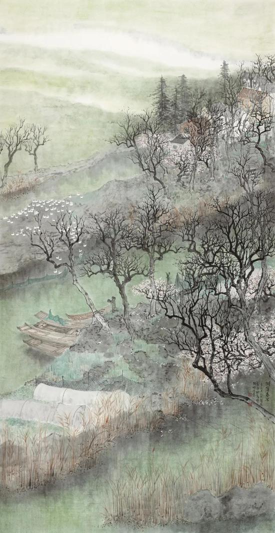 赵飞 湖滨春早 240cm×124cm 2019年
