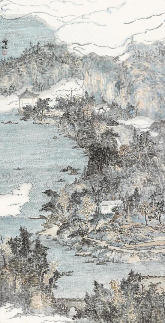 曹琼晓 湖山云起 138cm×69cm 2019年