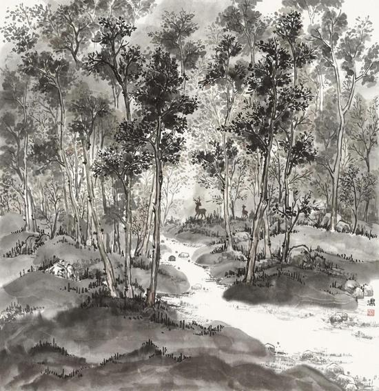 倪洁 林深时见鹿 69cm×69cm 2020年