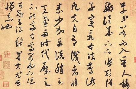 “月令”文化中节奏认知,对书法艺术韵味形成居功至伟。书法审美,用笔灵活、结构和谐、感情浓郁等等,一切均为有节奏而熠熠生辉,因缺乏节奏而暗然失色。汉蔡邕在《笔势》中认为“惟笔软则奇怪生焉” ,所言“奇怪”正是节奏所带来的无穷魅力。从线条来看,书法家通过笔锋调遣笔墨,幻化可粗可细、可浓可淡、可重可轻的节奏行进,使本无生机的线条立即呈现出壮浑、坚实、灵秀、圆润、超脱等多种审美特质,使赏析者为之跌宕激越、九曲回肠。从线条与线条勾连看,有连有断、有实有虚、有明有暗,或缠绵或果毅,恰似女儿五更情丝长又恰似台风瞬间扫寰宇。从书法家情感来看,更是既爱憎分明而又晦涩难显,几乎所有赏析者都可以感受到书法家豪迈与婉约的情感,但又都无以预期书写后一刻所呈现的是何种表现形式。或许,书法本身就是摆脱可能有的羁绊与预想,才得以与书法家情感节奏相合拍,只有在无所固定节奏中,才匹配上书法家情感把握与宣泄。正是这一点,书法才成为人类情感最相通的视觉艺术。诚然,书法节奏不会也不可能如音乐节拍、律诗平仄那样有言可述、缜密可寻,这是因为音乐和律诗节奏,经过约定俗成经过反复揣摩经过无尽修饰,以被固定化、规律化,而书法艺术尤其是狂草,大多是在相当随意而又敏捷中一气而成,容不得书法家丝毫加以修饰加以改变。但尽管如此,书法节奏仍然饶有风味,活跃于纸面,蹦跳于心中,如一曲磬鼓琴瑟合奏的无声音乐,悠扬动听、撞叩人们心扉。