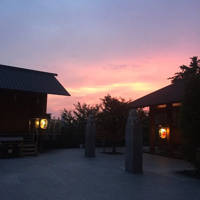 晚霞笼罩下的静谧神社