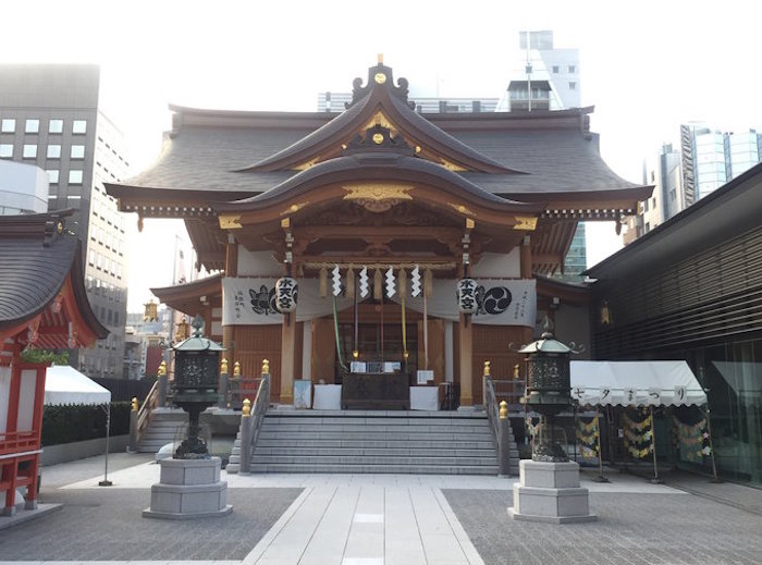 夹在高楼之间的水天宫神社