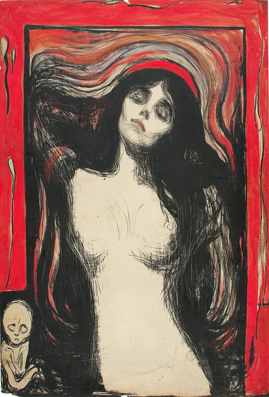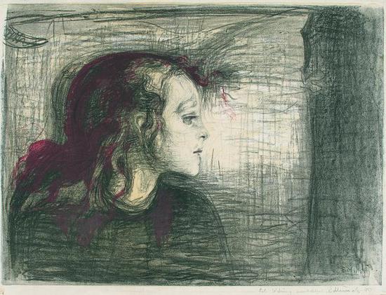 1894年前后,蒙克开始埋头创作版画。这是一次全新而大胆的尝试。之前数年间,他在经济方面一直没能取得成功,仅靠几次寥寥无几的奖学金以及断断续续的作品被购藏艰难度日。但是,版画的创作不但让他开始建立并拓展稳定的藏家群体,也迅速帮他成功树立起国际声望。而版画也逐渐成为他创作的核心,各种不同的基质,各种不同的尝试,让一向极具实验性与创新性的蒙克乐此不疲,这样的状态一直延续到他生命的尽头。德国表现主义大师恩斯特·路德维希·科什纳尔曾说道,“没有什么比蒙克的版画能更好地了解蒙克。”
