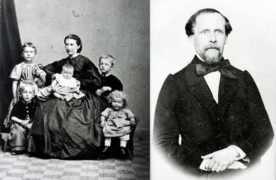 (左)母亲及其5个兄弟姐妹,右侧站立的男孩即爱德华;(右)父亲克里斯蒂安·蒙克