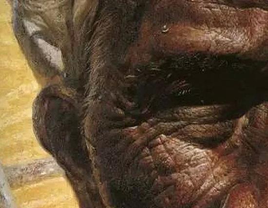 这幅画虽然尺寸巨大,但对细节的描绘特别逼真,包括皱纹、汗珠,还有手指甲上的肮脏都清晰可见。这样的画法,在以往的中国油画中,都是绝无仅有的。