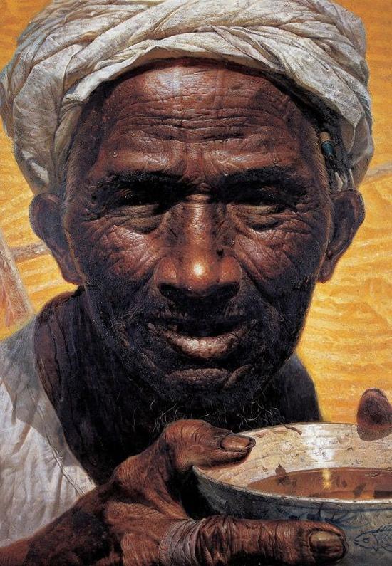 这幅作品实在是太感人了。画面中是一位人们再熟悉不过的老年农民形象,面朝着的黄土,背朝着的天,混着泥土的汗水,深邃不见的眼,是农民一生的缩影。