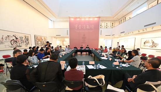 中国国家画院的发展经历了几个阶段,从“文化部中国画创作组”到中国画研究院,再到中国国家画院,经历了四十年。中国国家画院的李可染、黄胄、叶浅予等最早一批老艺术家们在学术和创作上都树立起了高峰。如今这些先生已经故去,后继者如何继续向前走,此次参展的十位艺术家大都成名于20世纪70年代,都有各自鲜明的风格面貌,在当代中国画创作领域较有代表性,在座谈会中,参展艺术家们分别回顾了自己的创作,与会专家学者们也进行了分享。