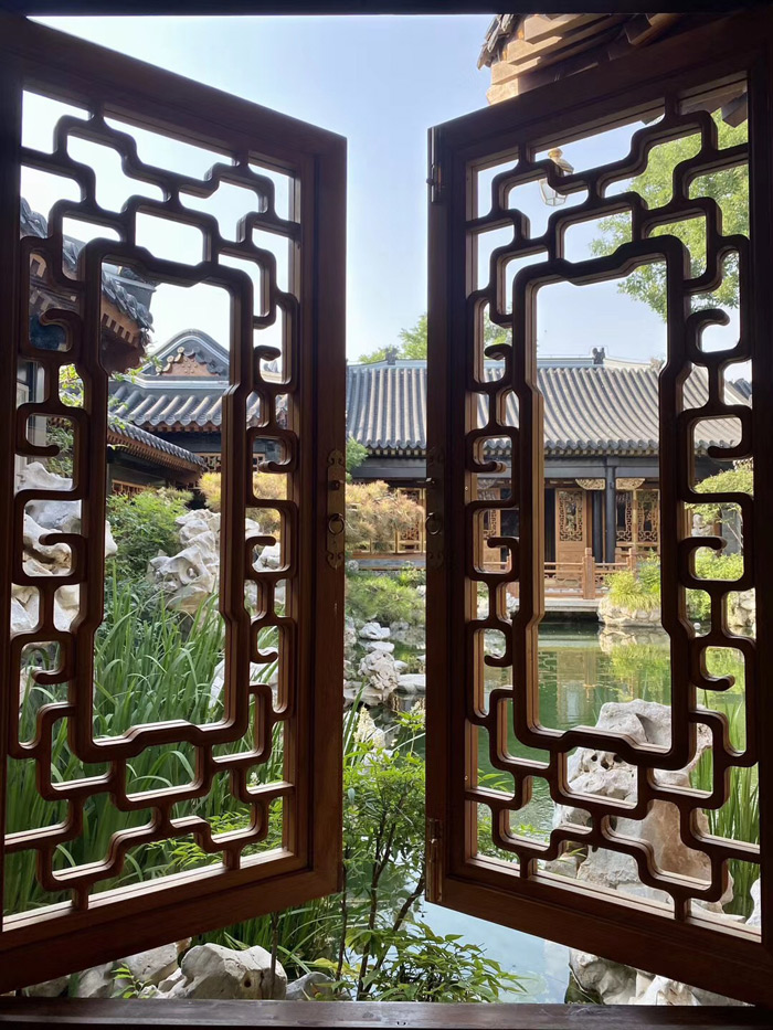 建筑气场强大,建园七载也抵不过一“新”字,朱金石用四十年的创作,不疾不徐娓娓道来,四两拨千斤式地化解,各自安好。在此特殊的地理位置中的雕廊画栋,唯文化自身可与强大载体和谐共处。