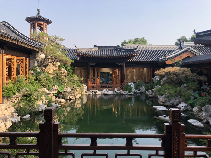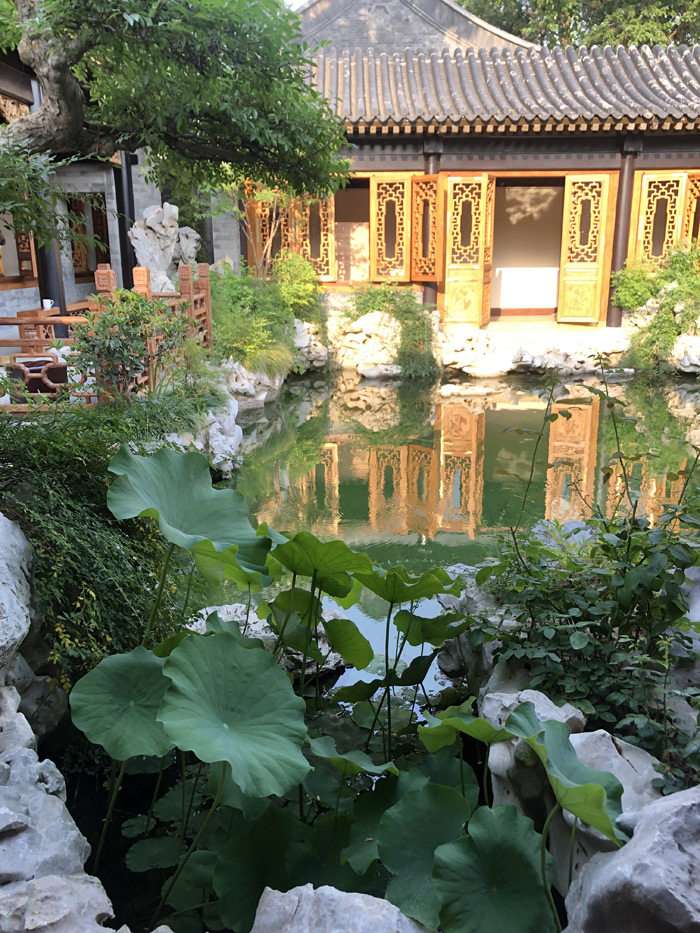 坐落在故宫东华门与普渡寺之间的四合院,定然有些灵气。更何况合艺术中心是苏式型制,厅堂四合,连廊围绕,漆柱雕窗;环抱一池幽绿在中心,溪水潺潺,寻石造景,因势举亭,与皇家气派的大张大合反差巨大,清新朴拙。