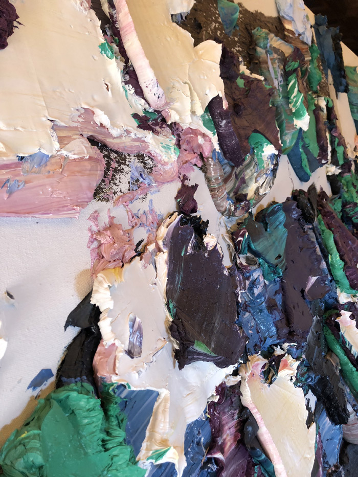 梁爽:《失去白云》是一幅很有代表的“厚绘画作品”,名字优雅,但离近了看,涂抹恣肆,太野了。画里边有很多特别丰富的中间色彩。