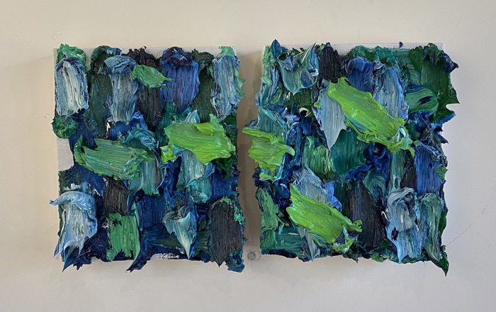 《来字》 50 x 60 cm每个,尺寸可变 画框、木条、画 布、颜料、 木板 2020