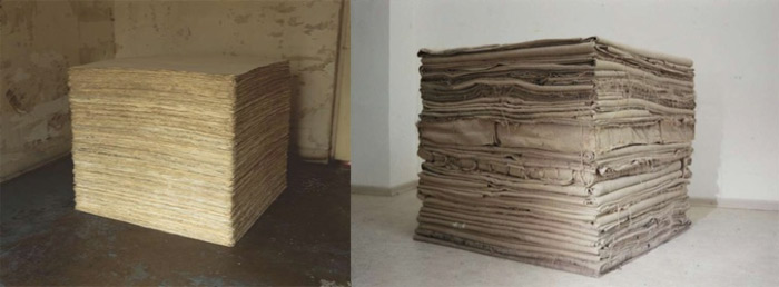 《方阵》一立方体宣紙在北京,一立方体亚麻布在柏林-铝板照片-1998