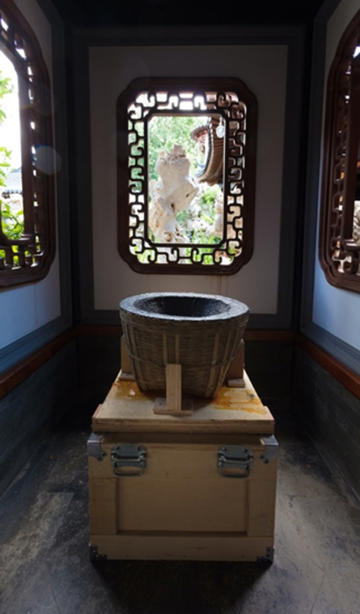 朱金石:其实是这样的,艺术家一定要有独特的方法。所谓空间艺术就是要找到一个别人不会用的空间,或者别人以后就不会再用的空间。布展的时候他们和我说西南角是机房,有发动机的声音,不能放作品,这提醒了我,我想别人都不用,我就要用。至少别人会在不经意之中提问:这个东西为什么要放在这?这其实已经达到了我的目的了。