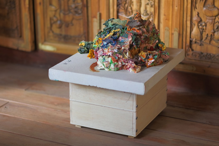 《假山石边的调色板》58 x 44 cm 调色板、油画颜料 2020