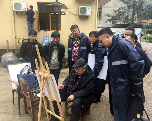 2017年,采风团在浙江桐庐现场写生创作。中国美术家协会官网图片