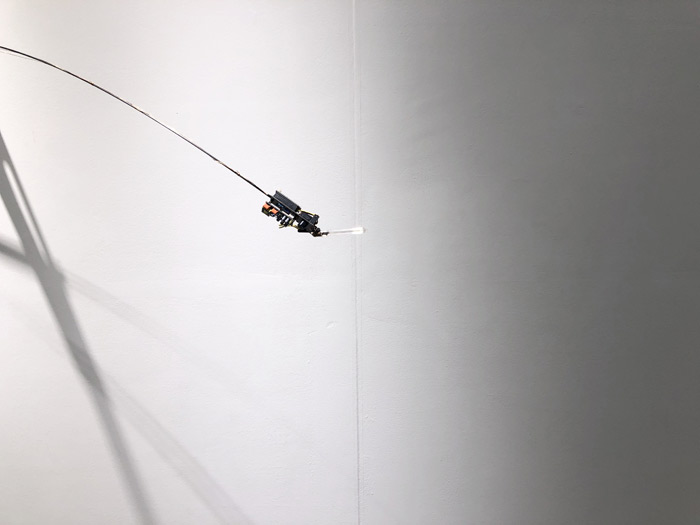 郭城,《(临时的)小器具系列 No.4》,空调外机支架,Arduino,定制电路,盖革穆勒管,铝,碳纤维管,2019