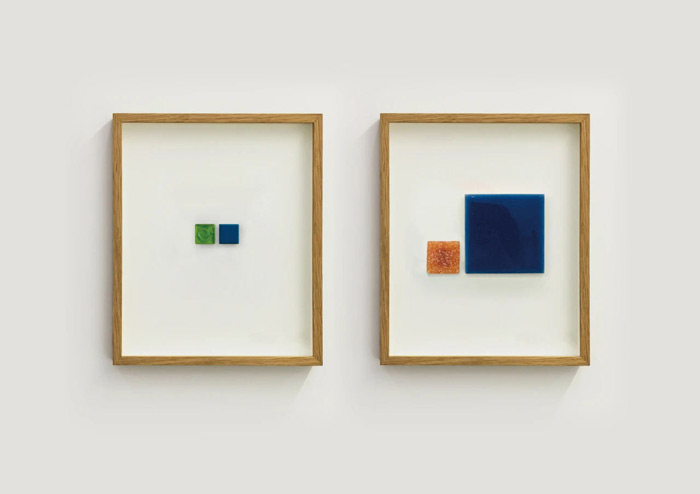 从A到D,从艺术大餐到餐后甜点,魔金石空间与主办方推出的公共艺术项目-李景湖《陪伴》似乎是这次艺博会之旅的一个完美结尾。常见于建筑物上的马赛克得到剥离,不同材质、纹理、色彩、大小的它们被两两配对,或是二者高矮相等,一个磨砂厚实,一个镜面精致,在一起互补所缺;或是二者一大一小,一深一浅,一个依靠另一个,相互陪伴。