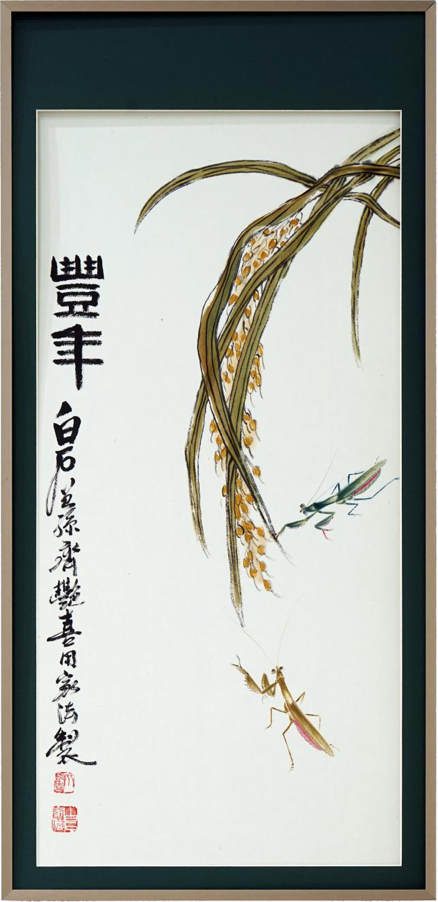 徐悲鸿夫人廖静文曾回忆,徐悲鸿曾说:“子如在白石子女中画得最好”。画家齐艳喜,1973年出生于湖南湘潭齐白石的故居,祖父齐子如,父亲齐灵根。齐艳喜性格温婉恬静,自幼习画,一直随先父到全国参加笔会、画展,饱祖辈名师指点下继承齐派技法,其画艺得以在不断进步。作为齐白石曾孙女,齐艳喜笔下的工笔草虫、花鸟、鱼虾尽得齐氏之妙,其所绘制的工笔草虫更为湖湘一绝,配以写意的花卉瓜果,追求“精”’、“细”、“变”一大特点。她既能极尽精工细腻之道,又可摆脱单纯的“自然再现”之羁束,阐释出一种自我主观的精神之意。