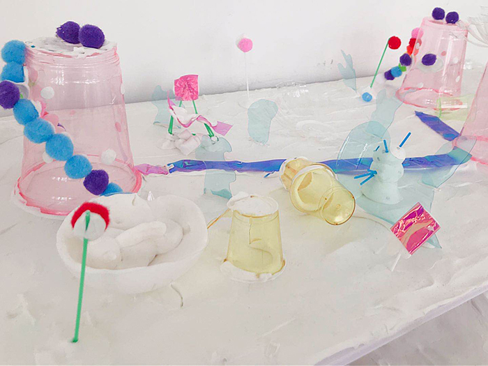 《关于海底建筑的未来畅想》,佟依诺、魏宇衡、周诗凝、贾昕湉、丽贝(6—10岁),2019,pvc板、粘土、报纸、塑料杯、吸管、胶等综合材料,尺寸可变