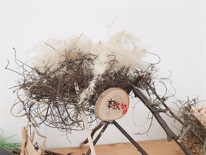 《小鸟的家系列》,赵希诺、刘思琪 Sandy、李牧渔、迟媛元、王小和、陈茉、康一白、解雨松、苏霁恩、郝俊铭、樊牧嘉、朱可钧、程柏轶(4—9岁),2019,综合材料,尺寸可变