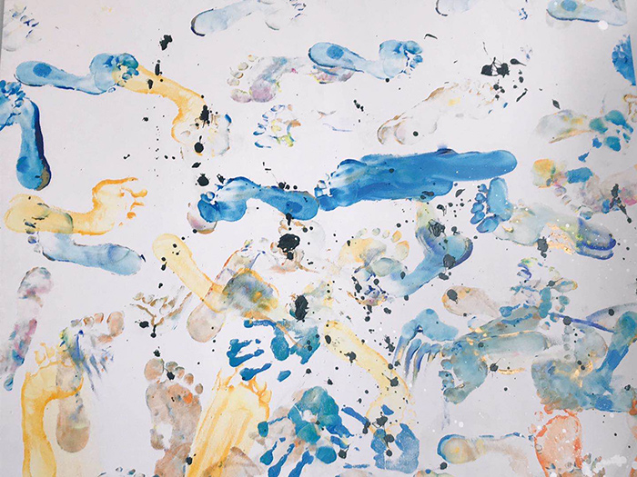 《舞之印记》,张雨菁、耿西贝、李李金、汪馨逸、张怡冉、吕奕晨、邓轲丹、李牧野、李珑妍、赵天然、周紫昭、马韵麟(5—12岁),2019,指画颜料、板刷等,尺寸可变