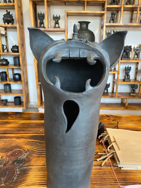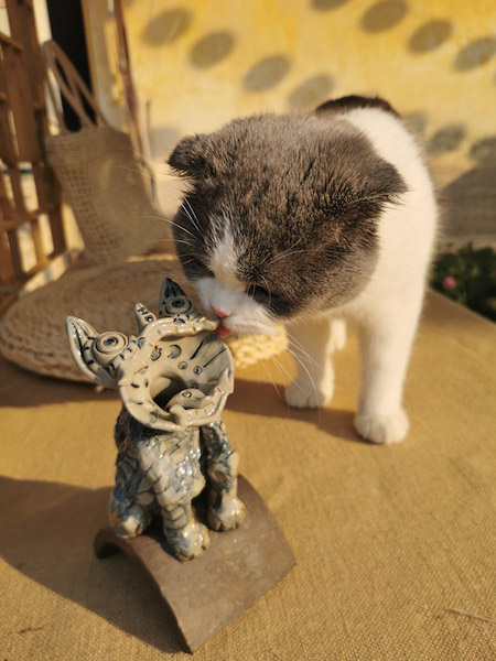 相比昆明瓦猫以拉胚工艺塑造出的比较雷同的圆形体态,剑川、鹤庆瓦土猫一片成型的单薄粗旷而言,来自玉溪的云溪陶瓦猫在工艺和设计上把现代瓦猫制作带入了更高一级的境界。