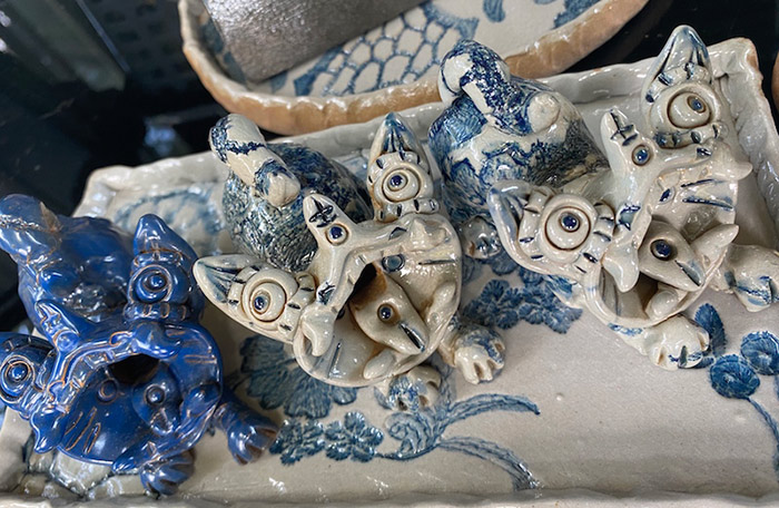 当然,瓦猫的灵动呈现一部分是设计师的功劳,却也少不了先进技艺的支撑。工作之余,王子强和李萍不仅是景德镇的常客,也和国外陶瓷界保持着密切的交流。他们在烧制温度和工艺上进行创新尝试,如:乐烧、柴烧,苏打烧等等。不断的尝试让两位艺术家的创作不单停留在瓦猫新颖活泼的表面造型上,同时融入在崭新技法的锤炼当中,内外两方面的高度结合才是一件工艺作品的完整表达。