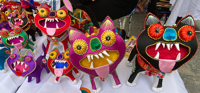 其实,瓦猫文化不单单是属于云南的文化特征,在贵州、广西、福建都有瓦猫文化的存在。它的存在范围之广,必然使之工艺手法多种多样,陶瓷、布扎、蜡染、剪纸等等,民间手工艺人利用不同的非遗技艺传承着脚下的山河土地。