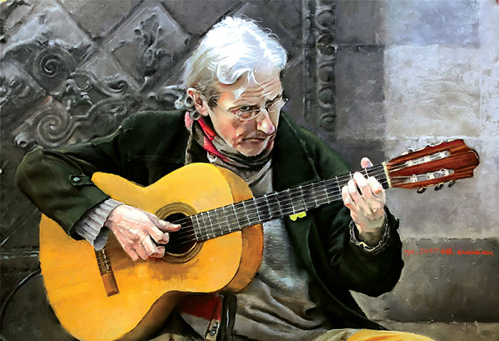 一等奖 马福宝 Ma Fubao《巴塞罗那街头艺术家》(Barcelona Street Artist) 55×80cm 粉画 2020